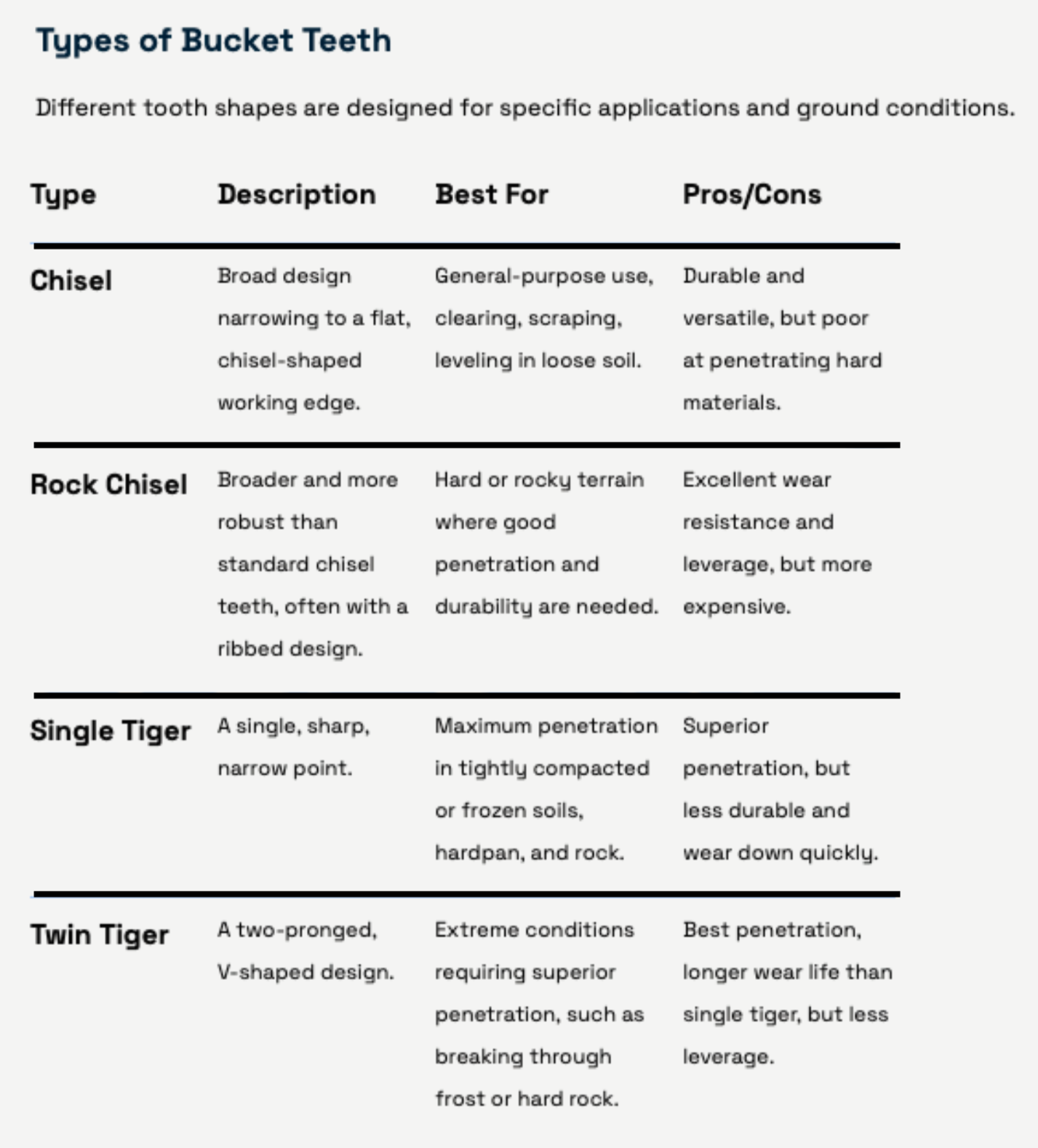 Equipment Protection: The teeth are the first point of contact and act as a sacrificial, replaceable part, preventing premature wear and tear on the more expensive bucket edge and structure.